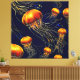 Entdecken Sie ein faszinierendes Muster glühender orangefarbener Quallen, die in der Tiefsee schwimmen und zeigen Sie die wunderschöne Biolumineszenz (Dieses Design aus KI). Bestellen Sie noch heute und Embrace the Joy of Shopping!