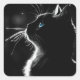 Profilporträt eines schwarzen Katzenkopfes mit Beleuchtungsleuchte auf schwarzem Hintergrund