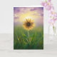 Eine einsame Sonnenblume steht hoch inmitten eines grünen Grasfeldes, mit einem warmen Licht aus dem Sonnenlicht, das durch seine Blätter zu strahlen scheint. Alle Texte können bearbeitet werden.