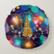 Dekorieren Sie den Weihnachtsstil mit unserem schönen und farbenfrohen Rundwürfelkissen mit leuchtenden Weihnachtsbeleuchtung Bokeh Golden Tree & Stars Design