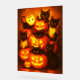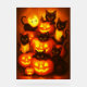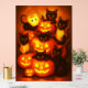 Ein skurriles Halloweenposter mit seltsamen schwarzen Katzen, eingebettet in glühende Jack-o’-Laternen. Dieses bezaubernde Kunstwerk verbindet Charme und Lustigkeit mit spielerischem, goldenem Licht und strahlt eine perfekte saisonale Dekoration für Katzenliebhaber und Halloween-Fans aus.