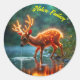 Glühender Hirschmagie-Waldtrunk Runder Aufkleber