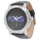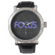 Glühender Neon Fokus Text auf Backstein Armbanduhr