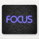 Glühender Neon Fokus Text auf Backstein Mousepad