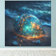 Glühender Seashell am Strand unter Leinwanddruck
