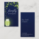 Ein glühendes Glas Limone grüne Leuchtkäfer auf einem dunkelblauen Nachthimmel mit gesprenkeltem Sternhintergrund. Ein eleganter und nostalgischer Entwurf, der an Sommerzeit erinnert, als die Blitzwanzen den warmen Sommernächte glühen und leuchten. Kundenspezifische vertikale Geschäftsinformations-Schablonenfelder, damit Sie es Ihre Selbst, einschließlich Namen, Titel und Kontaktinformationen machen. Die Rückseite hat einen einfachen zusammenpassenden blauen Hintergrund mit weißem Text.