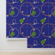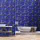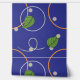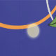 Glühende Glühwürmchen tanzen unter schwebenden Blätter über einem tiefblauen Hintergrund. Orangefarbene und silberne Ringe schaffen einen Effekt wie stilisierte Wellen, um der Basis ein wasserähnliches Gefühl zu verleihen.