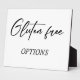 "Glutenfrei" Tabletop Plaque mit Easel ist eine charmante Ergänzung zu Ihrer Hochzeitsdekoration oder besonderen Eventdekor. Diese elegante und stilvolle Plakette besticht durch die diätetische Küche, die Sie in einem handgeschriebenen Schriftart genießen können. Die Tafel ist auf einem robusten Aal montiert und lässt sich so einfach auf jedem Tisch oder Regal abbilden. Unsere Plakette ist auf hochwertigen Materialien gedruckt und dauerhaft und garantiert, dass sie für die kommenden Jahre ein geschätzter Sake sein wird. Es ist der perfekte Weg, um eine Sorgfalt mit einer anderen Art von Essen zu schaffen und eine wirklich unvergessliche Atmosphäre für Sie und Ihre Gäste zu schaffen.