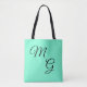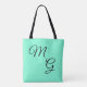 Elegante schwarze Buchstaben auf einer schönen Minzgrün-Tasche machen dieses Stück ganz besonders. Fügen Sie Ihren Bestellungen eine kleine Klasse hinzu. Personalisierbar. Von Sharon Lee Hudson.