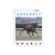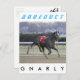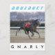 Runaway Pferd Gnarly, Rennen durch die Strecke im Aqueduct mit seinen Zügen hängen und flattern durch die Winterbrise. Gnarly verlor seinen Jockey auf halber Strecke durch die Strecke.