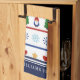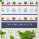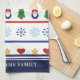 Moderne Weihnachtsküchentuch mit skandinavisch inspirierten Mustern von Weihnachtsgräbern, Fichten, Schneeflocken, Sternen und Herzen in einer zeitlosen Weihnachtspalette. Geben Sie Ihren Namen oder Familiennamen ein!