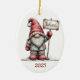Gnome Ceramic Oval Christmas Ornament