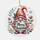 This 3D double-sided ceramic ornament features a whimsical gnome holding a “Merry Christmas” banner, printed in full colour on both sides for maximum charm. Crafted from glossy white porcelain, it’s a keepsake that feels both playful and sacred. The circular design (7.2 cm diameter, 0.4 cm thick) is lightweight yet substantial, with a golden thread for effortless hanging.