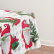 A Fun Holiday Christmas Tablecloth Patterned In Different Gnomes With Gifts, Trees, And Wreaths