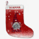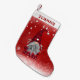 Niedliches rotes Gnom auf rot-weißem Hintergrund mit Schnee. Optionales Monogramm