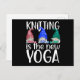Niedliches Design aus Strickzwergen mit dem Aufdruck: "Knittern ist der neue Yoga". Ideal für alle, die Strickarbeiten, ob für Anfänger oder für echte Strickfans.