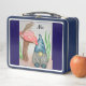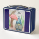 Genießen Sie Pilze und Vogellunchbox. Blauer Gnome und roter Pilz mit gelben Polka Punkten. Personalisieren Sie Ihre Daten mit dem Namen des Kindes.