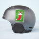 Dieser Vinyl-Aufkleber hat ein wenig Gnome mit einem dunkelroten Hut in einem roten Weihnachtsgebäck mit zwei Bonbons auf einem grünen, wirbeligen Hintergrund, umgeben von Schneeflocken.