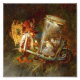 Heinrich Schlitt was a German painter and illustrator, known for his fantasy motive that feature gnomen, dwarves and faeries. His designs for beer steins are popular sammors items to this day. This painting is of a gnome collecting frogs and locusts and carrying them home in a wheelbarrow.