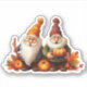 Ein Niedlicher Herbstaufkleber mit Gnomen und Kürbissen und bunten Herbstblättern.