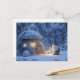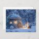 Gnome with a Lantern Outside a Snowy Stone Hut Postkarte