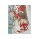 Funny vintage Christmas illustration of little white bearded gnomes dressed like Santa, dragging a cut tree trunk through the snow. Published by L. Prang & Co.