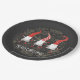 Ein festlich skurriler Gnome Frohe Weihnachtszeitung Teller für Ihren Weihnachtstisch in Rot und Weiß auf Schwarz, mit einer Kollektion von weich gehosted Bilder von Weihnachtsbäumen, Kiefernzapfen, und Kiefernnadeln in runder Form. Ideal, um den Weihnachtskuchen oder das besondere Jahresdessert und andere Leckereien mit einer fröhlichen feierlichen Präsentation zu servieren.