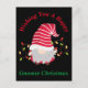 Gnomie Weihnachten geschrieben. Niedlicher Weihnachtsbrunnen mit Weihnachtsbeleuchtung hinter dem Gnome. Eine schöne Gnomie Ergänzung zu Ihrer Weihnachtskollektion in diesem Jahr.