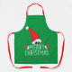 Diseño minimalista de un simpático gnomo de Navidad con gorro rojo puntiagudo, guantes a rayas, y ojos saltones. Su cuerpo forma un triángulo con felicitación navideña.