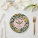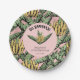 Diese personalisierten, grünen und gelben Teller mit "Go Bananas!" sind mit handgezückten, gelben Bananenbüscheln und tropisch grünen Bananen-Blätter auf einem rosa Hintergrund mit subtilen Regenrop-Details in einem leichteren Rosa versehen. Alle Texte können bearbeitet werden. Personalisieren Sie Ihre Daten mit Name, Ereignis und Datum.