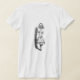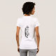 Alice mit Flasche in der Hand. Ergebnisse des Getränks auf Rückseite des Shirts.