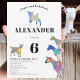 Eine Sammlung von farbenfrohen, lustigen Ziegen in lebhaften rosa, lila, blau, orange, gelb und aqua. Eine niedliche Farm Tiere 6. Geburtstagsfeier mit Ziegen und Ziegen, die auf Ziegen stehend sind. Diese lustige Party Einladung ist leicht zu personalisiert, um eine einzigartige Party Einladung für Kinder und erwachsene Ziegenliebhaber zu schaffen. Farbenfrohe psychedelische Ziege Original-Illustrationen der Künstlerin Catherine Sweetman