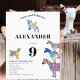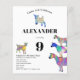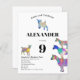 Eine Sammlung von farbenfrohen, lustigen Ziegen in lebhaften rosa, lila, blau, orange, gelb und aqua. Niedliche Landtiere 9. Geburtstagsparty Einladung mit Ziegen und Ziegen stehend von Ziegen. Diese lustige Party Einladung ist leicht zu personalisiert, um eine einzigartige Party Einladung für Kinder und erwachsene Ziegenliebhaber zu schaffen. Farbenfrohe psychedelische Ziege Original-Illustrationen der Künstlerin Catherine Sweetman