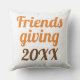 Dies ist ein Kissen, das Sie während des Erntedanks oder während der Feier benutzen können. Es hat eine lustige Nachricht, die "Gobble bis du wackelst" in Farben, die dich an den Fall erinnern. Es ist auch ein Bild von einem Truthahn drauf. Auf der Rückseite des Kopfkissens steht "Friendsgiving", und man kann das Jahr hinzufügen, um es besonders zu machen. Es ist eine tolle Möglichkeit, Ihre Feriendekorationen mit Spaß zu versehen und Ihre Gäste zum Lächeln zu bringen.