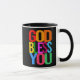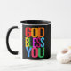 Gott segne Sie stilisierten, eleganten Text. Jeder Buchstabe einer individuellen Farbe. Positive, Christliche, jubelnde Kaffee-Tasse für jeden. Sie können dieses Design auf ein anderes Produkt übertragen, nutzen Sie einfach die Option unten. Viel Spaß, kaufe einen, genieße, bleibe sicher und sei glücklich!