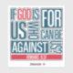 Bold typographic design featuring Romans 8:31 — "If God is for us, who can be against us?" — printed in striking red, white, and blue on black for high-contrast impact. Perfect for faith-driven apparel, gifts, and wall art that inspires confidence and reassurance