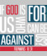 Bold typographic design featuring Romans 8:31 — "If God is for us, who can be against us?" — printed in striking red, white, and blue on black for high-contrast impact. Perfect for faith-driven apparel, gifts, and wall art that inspires confidence and reassurance