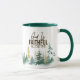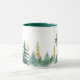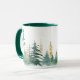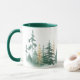 Die inspirierende Zitat-Kaffee-Tasse zeigt ein einfaches naturfarbenes Design mit einem Wald aus grünen und goldenen Kiefern. Es enthält ein ermutigendes Christliches Zitat: "Gott ist treu die ganze Zeit."_