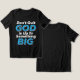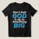 This motivational black shirt urges: "Don't Quit. God Is Up To Something BIG". The bold blue and white text conveys a strong message of perseverance, divine purpose, and expectation for future blessings. It encourages trusting God's greater plan.