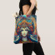 Ästhetische Frauen Power Tote Beutel für Shopping - Goddess Ästhetik Head fließend türkis Haar Portrait - Monat April Vibes - Dieses schöne ai Style Design zeigt eine Leiterin einer schönen Frau mit glänzenden blauen Augen und dekorativen Schmuck Krone in ihrem Kopf in einem göttlichen HimmelsUniversum. Die Hauptfarben dieses Kunstwerks sind aquamarin, türkisfarben, orange, rot, hellcremig. Das macht ein nettes Geschenk für sich und Ihre Freunde und Familie. One Side ist anpassbar, einfach den Text - LIEBE & PEACE - nach Ihren Wünschen anpassen oder löschen.