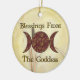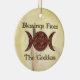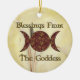 Ein Kreis mit zwei Halbmonden ist voller winterlicher Blätter in Braun, Rot, Orangen und Golden und der Worte "Segnungen von der Göttin".