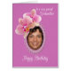 Eine Geburtstagskarte für eine Patentante. Orchideen symbolisieren Liebe, Luxus und Kraft - Eigenschaften, die die Schönheit ihres Geistes widerspiegeln. An ihrem Geburtstag wünschen Sie sich, dass ihr Tag so exquisit und unvergesslich ist wie diese Blüten. Fügen Sie ihr Foto hinzu, um eine einzigartige Karte speziell für sie zu erstellen.