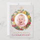 Godmutter Vorschlag für eine Taufe eines Mädchens Es hat ein Foto für ein Mädchen mit Platzhalter in einem wilden Rose Kranz mit einem goldenen Kreuz darüber. Unter dem Kranz der Rose wird die Patronenbotschaft in einem eleganten Kalligraphieskript geschrieben, mit Ausnahme des Wortes Godmutter, das in großen roten Kappen steht. Auf der Rückseite ist die Nachricht in demselben goldenen kalligraphischen Skript geschrieben. Der Hintergrund auf beiden Seiten ist weißer Marmor. Die Vintage Blume Garland von weißen, rosa, roten und gelben wilden Rose stammt von dem belgischen Maler und Botaniker Pierre-Joseph Redouté (1759-1840), aus dem Buch "Les Rose" von Pierre Joseph Redouté und Claude Antoine Thory, das 1817 veröffentlicht wurde und nun öffentlich zugänglich ist. Das Platzhalter-Foto eines kleinen Mädchens in Rosa stammt von Vera Kratochvil von Public Domain Pictures und hat eine Modellfreigabe.