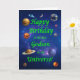 Geben Sie Ihrem weltraumliebenden Godson die beste Geburtstagskarte aller Zeiten! Sagen Sie Ihrem Patensohn, dass er der Beste im Universum ist. Eine Weltraumszene mit allen Planeten und dem Mond, die sich einem glücklichen Geburtstag wünschen.