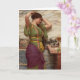 Die Grußkarte wurde von einem schönen dreisängigen Porträt des britischen neoklassizistischen Künstlers John William Godward inspiriert (Eine faire Reflexion, 1915). Der Sitzer ist sein Lieblingsmodell, eine Italienerin, die vor einem Spiegel stehend ist und ihr Haar oben auf ihrem Kopf anordnet.