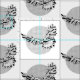 Eine moderne, geometrische Abbildung eines Falkenfalken. Der schwarz-weiße Vogel fliegt vor einem Halbmond.