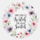 Dieser whimsical Aufkleber ist mit einem lebendigen Blumendruck in Aquarellfarben mit der Meldung Once You Go Hexe You Never Switching versehen.