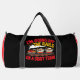 This humorous black and red duffle bag features a playful graphic of a train with gravy boats for cars, chugging along on a gravy track. The text "I'M GOING OFF THE RAILS ON A GRAVY TRAIN" is displayed above, making a quirky statement. Perfect for foodies, travelers, or anyone with a fun, unconventional sense of humor. Edit color of the bag caps and body in the Design tool to your favored colors.