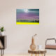 Das ist keineswegs eine typisch schottische Landschaft! Stattdessen ist es ein Fantasieland, das auf einer Zuhause inspiriert ist, die durch die Landschaft führt, wo ein Feld von hellgelben Rapspflanzen völlig in Alien und wie etwas aus einer anderen Welt aussah. Ich habe einen ebenso fantastischen Himmel in lila und blauen Tönen gemalt. Es gibt eine Baumreihe in der Silhouette und am Himmel ist eine Rochherde, die am Ende des Tages Zuhause fliegen.