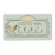 Elegantes Ei-Karton-Etikett mit aufwändigen Rahmen und Vintagen Hühnern. Personalisieren Sie Ihre persönlichen Angaben mit Ihrem Farm- oder Firmennamen, der Anzahl oder dem Sortiment der Eier, dem Standort des Betriebs und der Handynummer. Das Wort EGGS wird in einem "geprägten" Schriftart geschrieben. Vintages Logo eines Bauernhofs mit Silo und Baum mit einem Heftzaun in einem ovalen Medaillon oberhalb Ihres Bauernnamens.